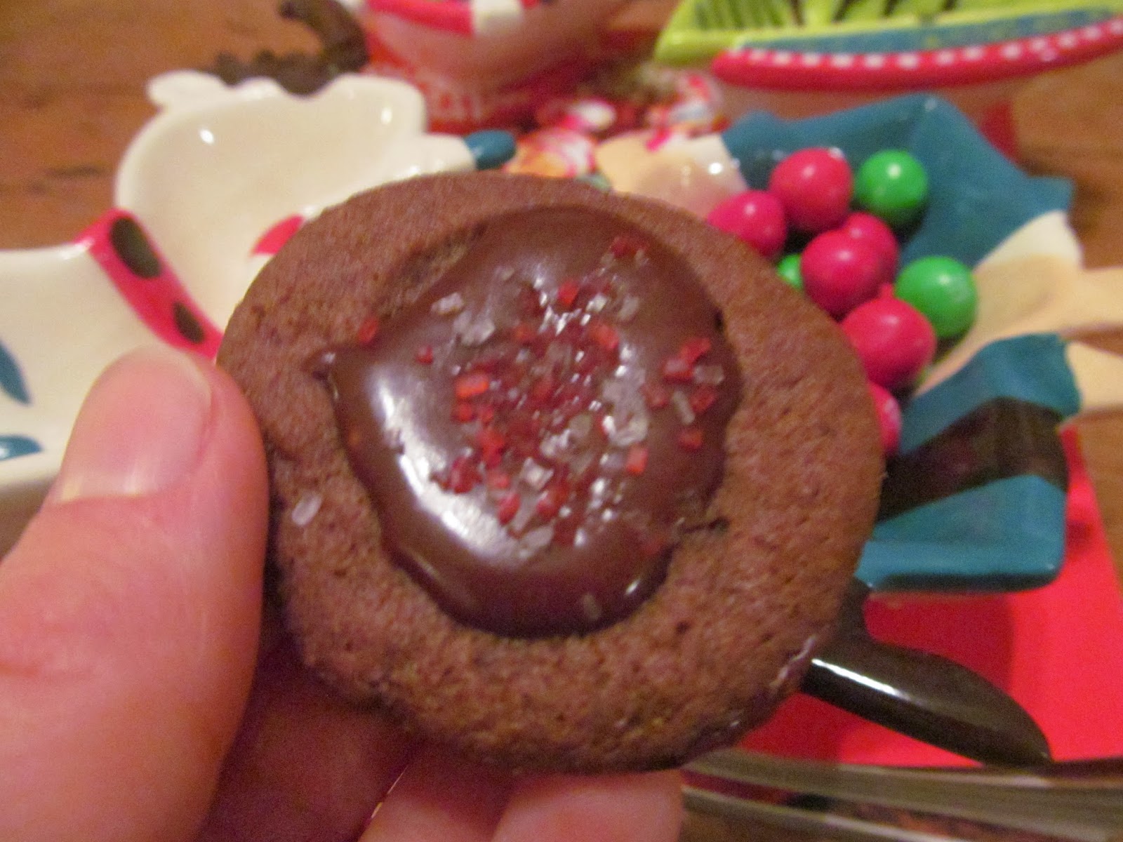 I found these on Pinterest, and you can find the recipe over here at Pinch of Yum (her cookies are far more beautiful than mine). These are sort of reminiscent of chocolate shortbread cookies and are the absolute perfect way to use up all that butter you have lying about. ;) The only real issue I ran into was not being able to find red and green Christmas sprinkles at not one, but two stores! What's the deal Carlisle? Anyway, the peppermint sprinkles still taste good and these are a delicious addition to any Christmas baking arsenal.
